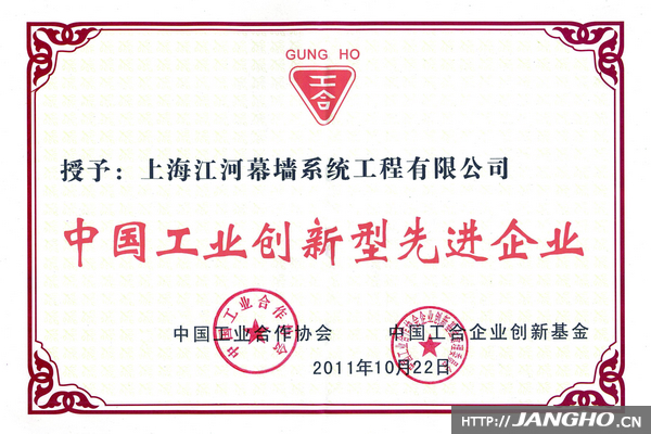 10月22日,中國工業(yè)合作協(xié)會第四次全國會員代表大會在北京召開。十屆全國人大常委會副委員長顧秀蓮、十屆全國政協(xié)副主席李貴鮮、中國工合理事長高宗銀等領(lǐng)導(dǎo)出席。會議表彰了在建設(shè)創(chuàng)新型企業(yè)方面做出突出成績的先進企業(yè)和為中國工業(yè)合作協(xié)會做出杰出貢獻的先進個人,共授予了12家企業(yè)“中國工業(yè)創(chuàng)新型先進企業(yè)”稱號。上海江河幕墻系統(tǒng)工程有限公司以其在管理創(chuàng)新、技術(shù)創(chuàng)新、產(chǎn)品創(chuàng)新以及文化創(chuàng)新上的突出成就獲此殊榮。